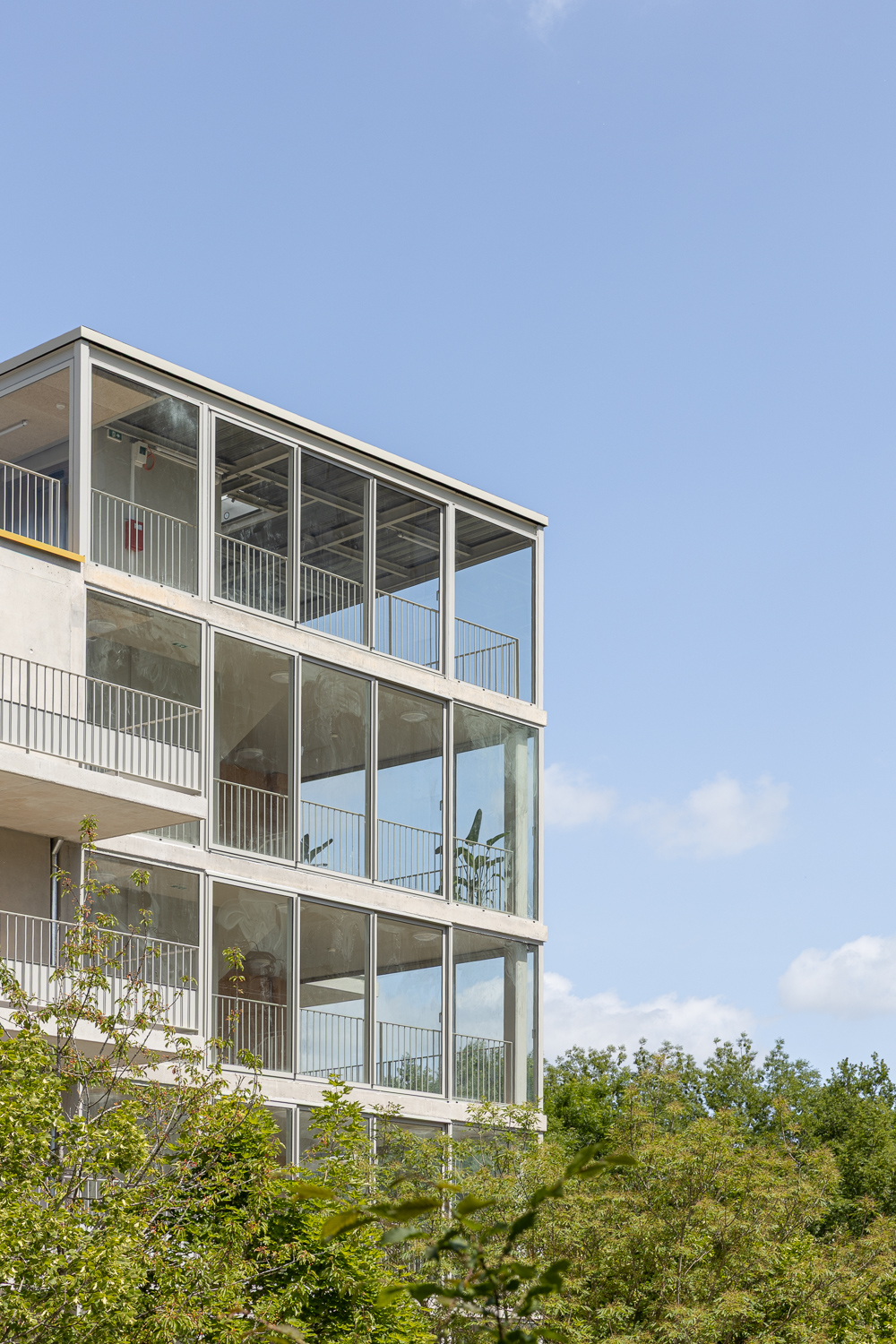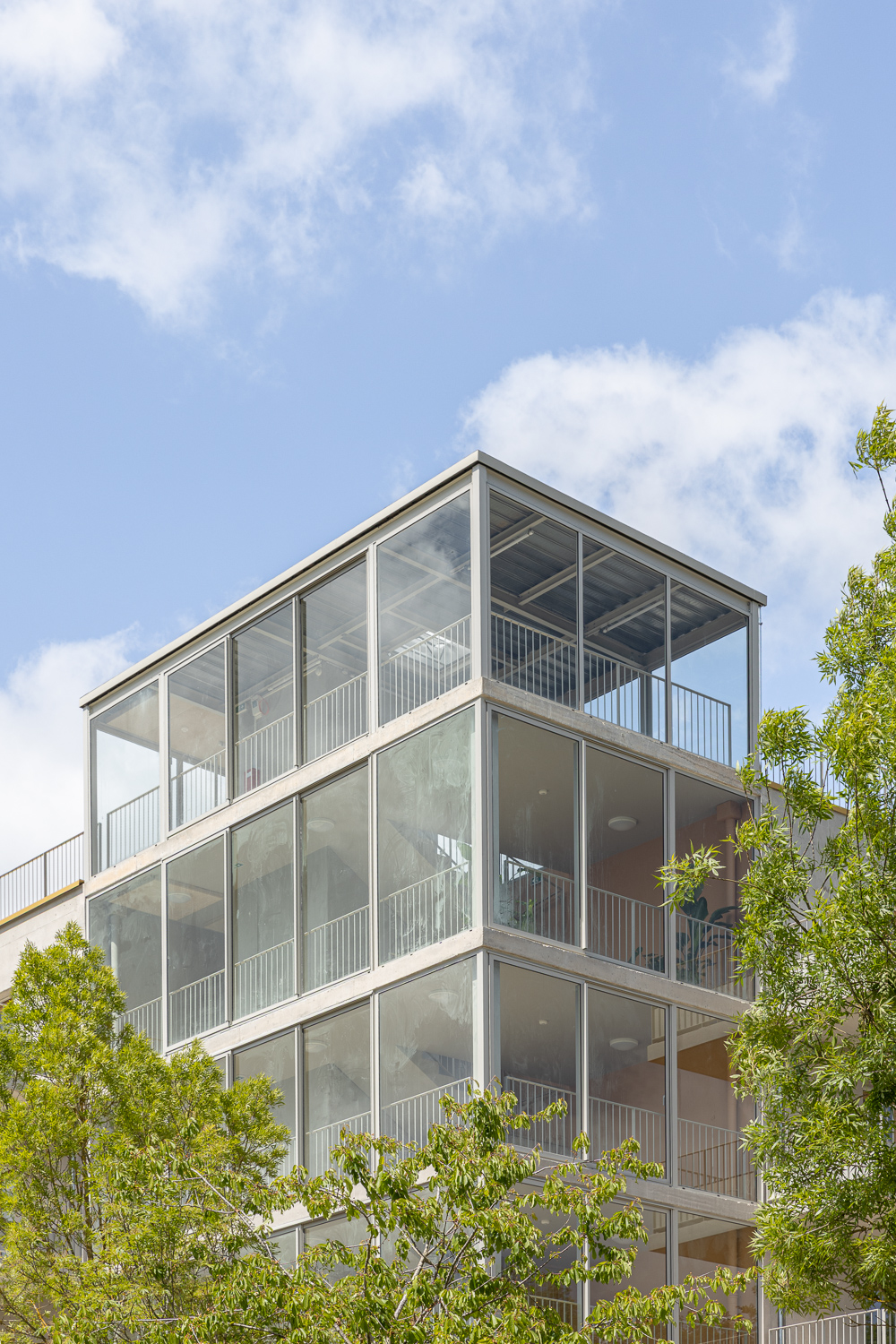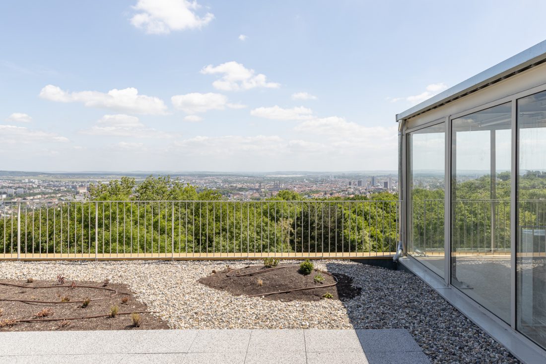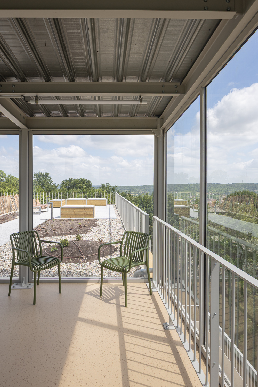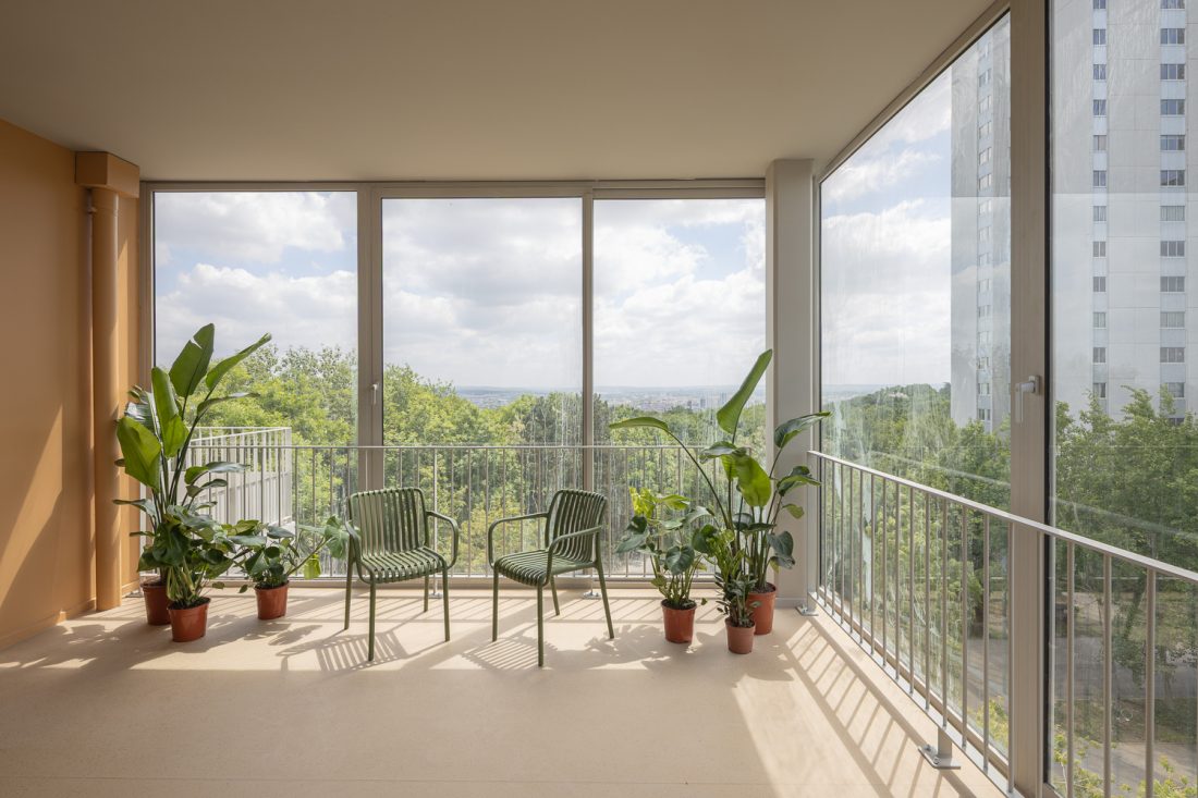Une serre verticale, jardin d’hiver partagé, permet d’accéder au jardin sur le toit. Un lieu de vie, un lieu appropriable, qui est investi par les habitants.